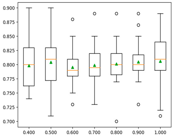 Boxplot depicting accuracies on varying values of LR.