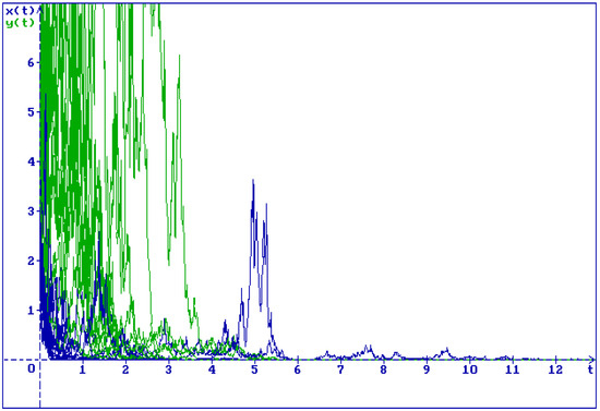 Figure 3 illustrates the stochastic extinction of both species for the case of
