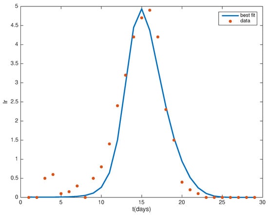 Parameter estimation was carried out within the dynamic framework of malaria infection, encompassing both competition and drug treatment. The model parameter values were estimated using the least squares method to fit a dataset on malaria infection from [24]. The least squares problem involves minimizing the discrepancy between the sum of squared differences and the observed data over a parameter vector space constrained by a predefined feasible region. It is crucial to recognize that the standard least squares formulation comprises two fundamental components: mathematical and statistical [28]. The mathematical model utilized in this study is the malaria model (1) we developed. The statistical model is built on the assumption that the output of the model and associated random deviations (measurement errors) are governed by the random variables: