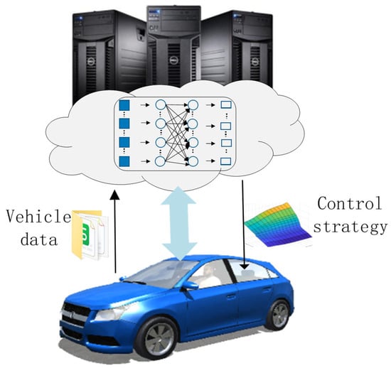 In the current scholarly discourse surrounding longitudinal and lateral motion control in autonomous driving vehicles, the predominant methodology largely entails the establishment of a two-degree-of-freedom reference model. This model serves as the basis for deriving control objectives such as the desired yaw rate and lateral deviation angle of the center of mass. Subsequently, a simplified linearization of the tire model is applied to facilitate kinematic control. However, within the context of the seven-degree-of-freedom model of DDAVs, it becomes evident that joint longitudinal and lateral motion control in real vehicle systems is subject to three primary coupling effects including kinematic coupling, load transfer coupling, and tire force coupling [30]. Notably, the dynamic response of both vehicles and tires manifests significant nonlinearity, alongside uncertainties and time-varying characteristics. These factors pose challenges to the precision of mainstream control methods. Moreover, errors in parameter estimation can profoundly impact the adaptability of control laws across various operational conditions. Consequently, the machine learning algorithms introduced in this study offer a comprehensive solution to address the shortcomings of mainstream control methods in terms of precision, efficiency, and robustness. Furthermore, as illustrated in Figure 4, the practical implementation of deep reinforcement learning methods during vehicle operation enables continuous training throughout the vehicle’s lifecycle and periodic policy iteration. This approach significantly reduces the reliance on high-precision mathematical models of vehicles and computational resources when compared with mainstream control methods.