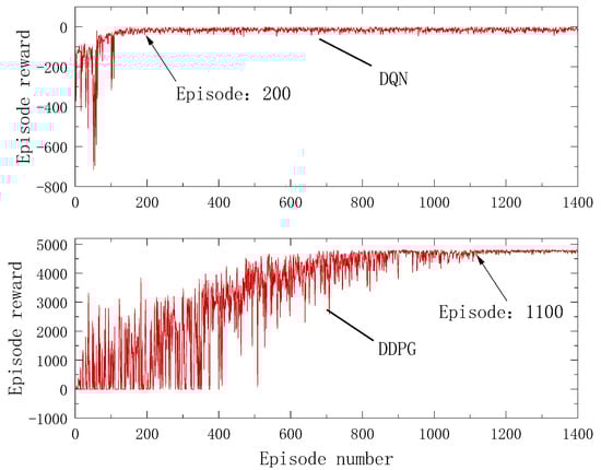In the process of autonomous driving, commands for the line-controlled steering motor can be discretely outputted. Discrete command output typically entails simpler control logic, ensuring real-time capability and implementation simplicity of the line-controlled steering motor controller, while also meeting the requirements of the steering system. Moreover, because of the fixed values and ranges of discrete commands, it becomes easier to predict and control the vehicle’s steering behavior, thereby enhancing system stability and controllability. However, the adjustment requirements for the vehicle’s power output section are more refined. Discrete command output may affect the driving comfort of the vehicle. Considering that in operational scenarios of the vehicle, there is a greater emphasis on controlling longitudinal speed, and aiming to fully leverage the advantages of deep reinforcement learning algorithms such as DQN and DDPG in different control dimensions [34], enhancing system robustness and flexibility while reducing the complexity of algorithm design, the DQN algorithm is adopted for lateral control Agent1, while the DDPG algorithm is employed for longitudinal speed control Agent2.