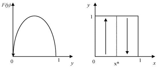 Case 3: if or , then is constant. For the two solutions of and for Equation (9), , ; thus, is the only ESS.