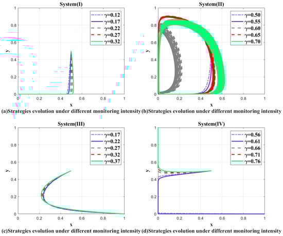 represents the average fines that LGs can derive through the punishment of cheating behavior. It is also the multiplication of the monitoring intensity and the quantity of the cheating punishment, denoted as the cheating-punishment intensity. In Case 4, when the penalty intensity for LG subsidies is lower than the subsidy and supervision costs, with a higher subsidy intensity and milder penalty for the subsidies, the LGs sustain elevated subsidy and supervision costs over an extended period, resulting in significant financial pressure. From a self-interest perspective, discontinuing subsidies to OPEs would be a rational decision, aligning with the actual situation;