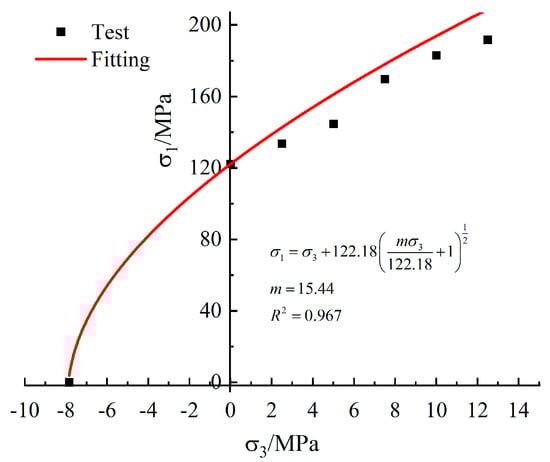 In Table 4, where , , , and MPa. We use the balance and mass method to obtain that , , , , , and , The basic mechanical parameters of the sandstone obtained after collation are shown in Table 5.