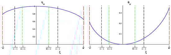 For fixed n (and also m and M), the family of cyclic scales has generators that, in general, are not the tonal class of any harmonic; that is, they are real scales. In this case, we write them as so that, for , we obtain a partition modulation, which is a continuum of irregular temperaments [28,29] close to and , also corresponding to cyclic scales. Hence, the n-tone cyclic scales are a family of modulating temperament scales around the generator , namely, .