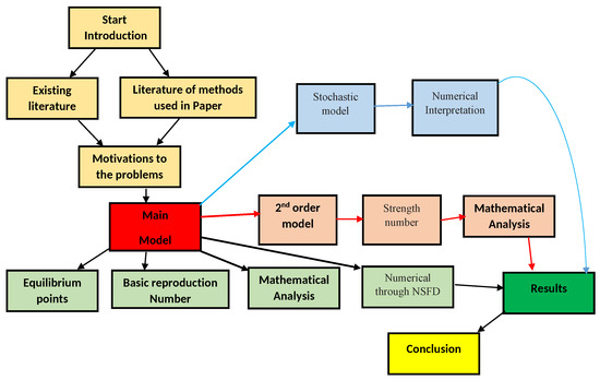 The outline of this paper is as follows: In Section 1, we write the introduction and formulation of our deterministic model. Section 2, we provide the fundamental analysis about the equilibrium points and reproductive number for the deterministic model. In Section 3, the stability analysis is given. In Section 4, we perform an analysis based on the second derivative test. In Section 5, a numerical scheme based on the NSFD method is formulated. In Section 6, the stochastic model is analyzed. In Section 7, the numerical results for the stochastic model is given. Finally, a brief conclusion is given in Section 8.