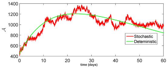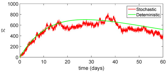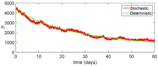 Onward in Figure 13, Figure 14, Figure 15, Figure 16 and Figure 17, we compare the deterministic and stochastic model.