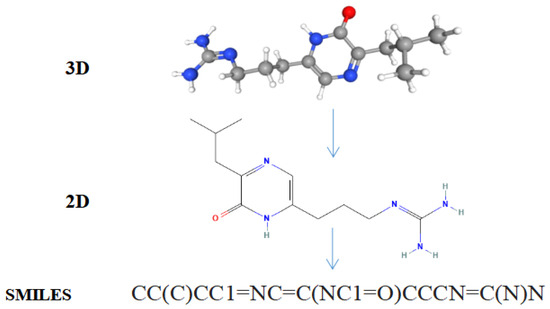 - Šegota, S.B.; Anđelić, N.; Lorencin, I.; Musulin, J.; Štifanić, D.; Car, Z. Preparation of simplified molecular input line entry system notation datasets for use in convolutional neural networks. In Proceedings of the 2021 IEEE 21st International Conference on Bioinformatics and Bioengineering (BIBE), IEEE, Kragujevac, Serbia, 25–27 October 2021; pp. 1–6. [Google Scholar]