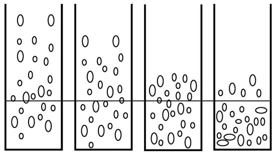Beyond the usual spectrum preprocessing methods, the data analysis also had to account for the settling phenomenon of the suspended liquid samples. As illustrated in Figure 5, particles within the suspension generally possessed higher densities than the liquid medium, causing them to gradually settle or precipitate over time. Figure 6 showcases the evolution of the absorption spectra over different time intervals, displaying a discernible, orderly gradient-like transition from 0 to 300 s.