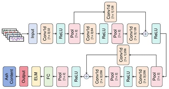 Building upon in-depth research into coal slime flotation ash content detection, this paper proposed a rapid detection method for coal ash content in tailings suspension based on absorption spectra and deep feature extraction. The overall framework of the DSFN is shown in Figure 7.