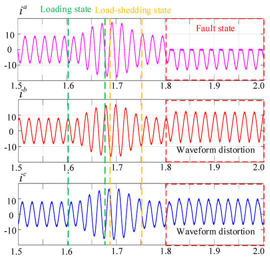 Three-phase currents during the loading/load-shedding state and OC fault [6].