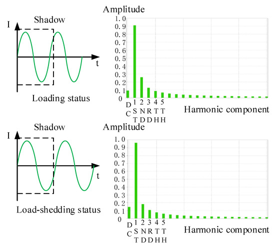 Step 2: The calculated value is compared with the error threshold . If , it can be considered that the current waveform in the sliding window is a standard sine wave. The average error threshold requires that the current is also approximately regarded as a sine wave in the loading/load-shedding status. If , the three-phase current waveform is no longer a sine wave.