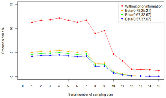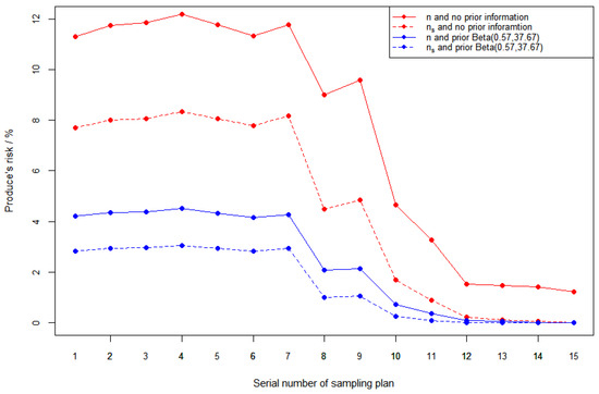 - For the first 10 sampling plan serial numbers (corresponding to the smaller AQL and acceptance number c), the difference in the producer’s risk in different cases is more obvious. This illustrates that prior information is especially important for a small AQL and acceptance number c;
