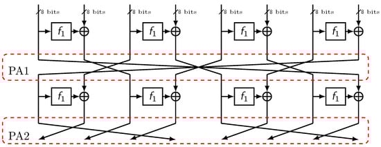 IIoTBC-A is optimized for 8-bit MCUs, which are commonly used in industrial IoT settings. It is based on an eight-branch generalized Feistel structure, as shown in Figure 1.