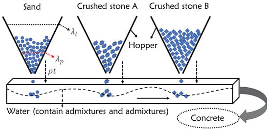 As depicted in Figure 10, the production of concrete involves the blending of raw materials from three interconnected small hoppers. Using sand as a representative example, during the replenishment process, the sensor monitoring system constantly oversees the remaining material in the hopper and relays the data to the central scheduling system. Leveraging the measured hopper residual quantity , the scheduling system accurately determines the replenishment time window for each hopper.