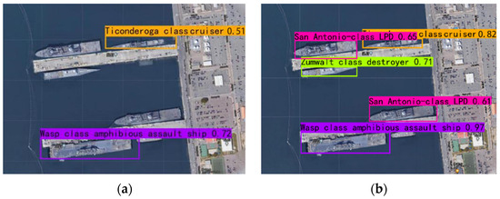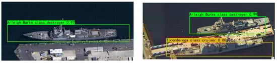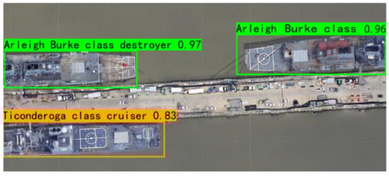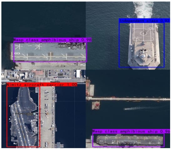 As can be seen from Table 6, the average identification rate reached 81.7%. The Arleigh Burke-class destroyers had the highest detection accuracy among the nine types of ships considered. The network is more inclined to such targets because of their larger sample size [33].