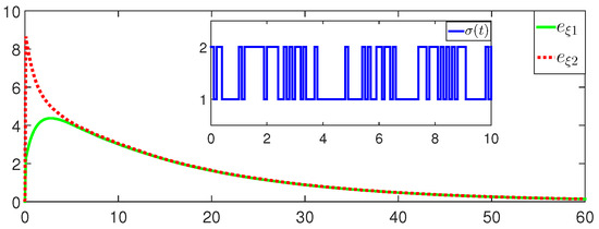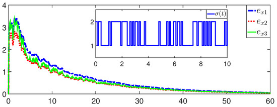 where and . By (7), . Then, the error system (4) is asymptotically stable. □