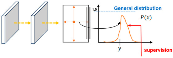 DFL loss was mainly proposed to address the inflexibility of generated bounding box representations [24]. Traditional object detection struggles to accurately define the true bounding boxes of target objects in complex scenes due to boundary ambiguity and uncertainty caused by factors such as subjective labeling, occlusion, and blurriness. Traditional regression methods approximate the predicted value to a discrete and certain value: the label position y, as shown in Figure 2. For complex scenes, the regression distribution range is more realistic compared to approximating discrete values. As shown in Figure 3, based on a similar concept, DFL loss models the box position as a general distribution, enabling the network to quickly focus on the vicinity of the label position y and improve the detection accuracy.