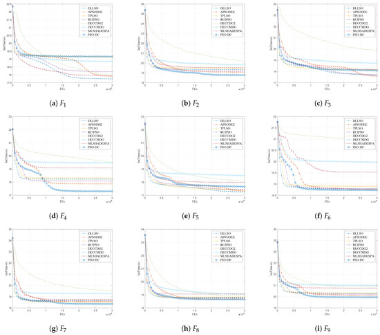 In summary, the numerical comparison results above demonstrate the competitiveness of the proposed PSO-DC in solving LSOPs, indicating that PSO-DC enhances diversity preservation and thereby improves the balance between exploration and exploitation.