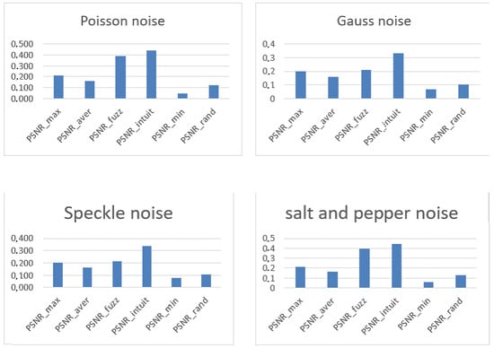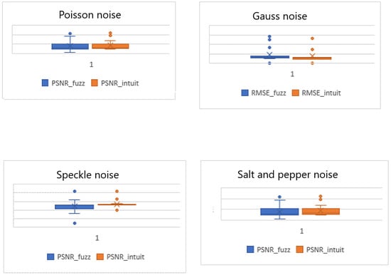 Peak Signal-to-Noise Ratio (PSNR) is the ratio between the maximum possible power of an image and the power of corrupting noise that affects the quality of its representation [61]. PSNR = 10, R = (n = 8, 8 bits); let R denote the maximum pixel value of the original image, which is set at R = 255.