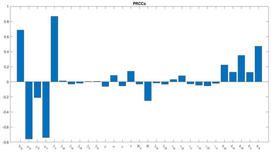 Partial rank correlation coefficients (PRCCs).