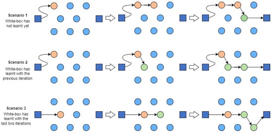 In Equation (11), the operation calculates the remainder when i is divided by . This approach enables us to classify nodes into distinct categories, each representing a unique aspect of the black-box function. Utilizing modular division ensures an even distribution of these node types across the network and adds complexity to the reward system.