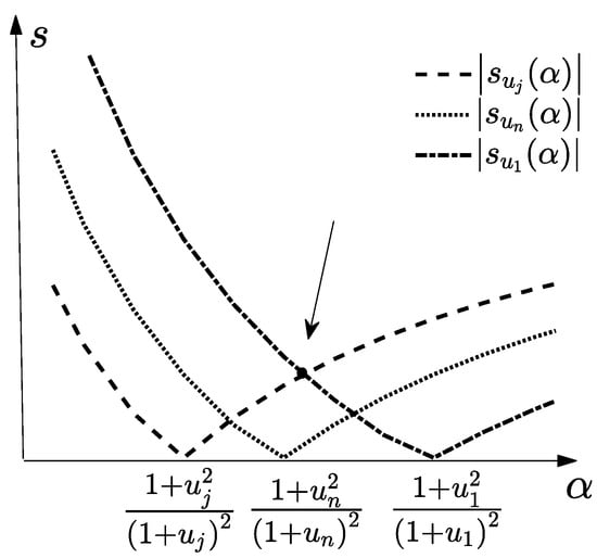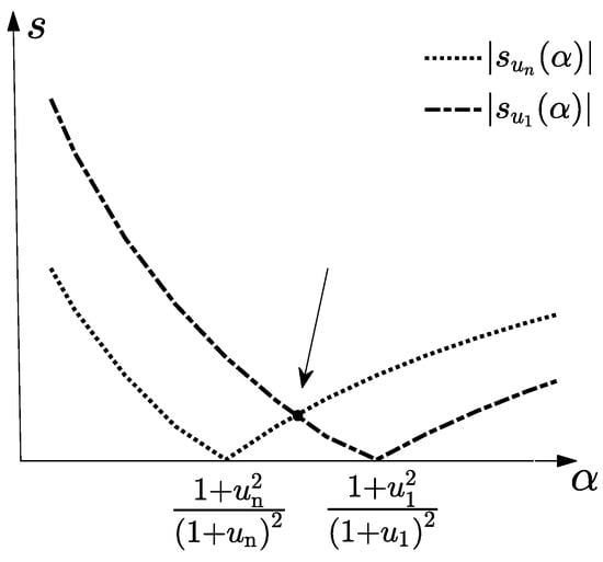 As shown in Figure 2, the image of is above the image of , and the arrow points to the position of the optimal parameter , and it is easy to see the optimal satisfies , after some algebra we have . Substitute into , we have: