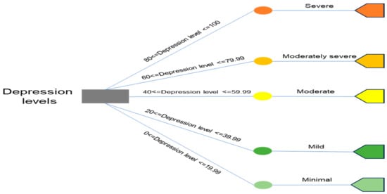 As can be seen, both the PHQ-9 questionnaire and Mental-Health define five depression levels (see Figure 8).