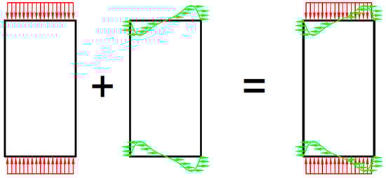 The stress field within the specimen may be influenced not only by geometry, but also by the relative stiffness of the materials in contact, their preparation process, and the quality of the surface. Therefore, it is worth noting that only flatness tolerance has been established for platens (Table 2). Nevertheless, current literature accepts that possible deviations in testing results can be overcome for specimens with sufficient length [14,15,16], as due to the Saint-Venant’s principle, a homogeneous compression stress state will be developed at their mid-height points. However, the actual contact stress distribution will always be formed by the superposition of one normal and another shear load distribution (Figure 2). Only in those cases in which an adequate lubricant is used can the contact conditions be considered to produce neglectable shearing stresses. Nonetheless, no standard considers this last scenario.