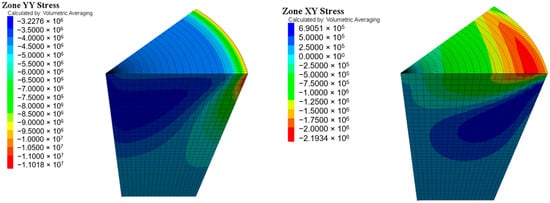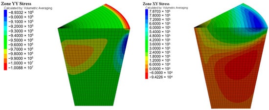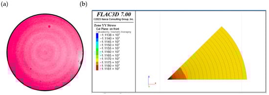 - Al-Chalabi, M.; Huang, C.L. Stress Distribution within Circular Cylinders in Compression. Int. J. Rock Mech. Min. Sci. Geomech. Abstr. 1974, 11, 45–56. [Google Scholar] [CrossRef]