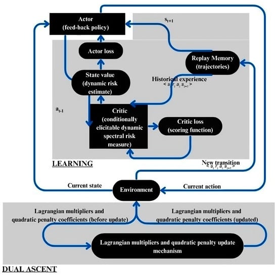 - Coache, A.; Jaimungal, S.; Cartea, Á. Conditionally Elicitable Dynamic Risk Measures for Deep Reinforcement Learning. SSRN Electron. J. 2023, 14, 1249–1289. [Google Scholar] [CrossRef]