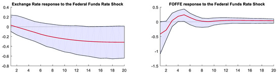 The exchange rate plays a dominant role in international trade and the international finance market. When the Fed’s unconventional monetary policy was implemented, the federal fund rate, as the indicator of U.S. monetary policy, had hit the ZLB and therefore could not go lower; persistent deflation raised the effective cost of borrowing for households and businesses, especially in the trade sector. Meanwhile, the liquidity released by QE flowed to the financial sector, pushing up financial market indices. Thus, the spillover effects of both sectors influenced the exchange rate, and we took the effective RMB exchange rate and funds outstanding for foreign exchange (FOFFE) into the SVAR model separately to investigate the effects on the exchange rate in the sample.