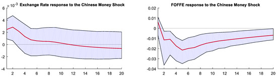 For each specification in the SVAR model, we considered the situation that a −1 percentage point change would cause a decrease in the federal fund rate and a +1 percentage point change would cause an increase in the China M2 growth rate.