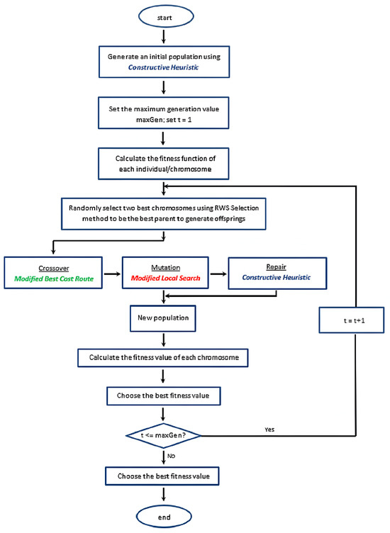 - Generating the initial population using a constructive heuristic method to lay the foundation for the genetic algorithm’s optimization process;