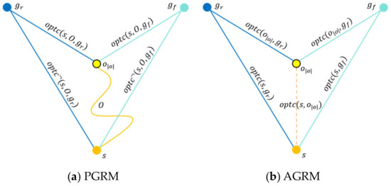 In Definition 3, the calculation of is determined by the goal recognition model of the observer. Assuming that the path-planning domains are discrete, fully observable, and deterministic, we presented PGRM and proposed AGRM below.