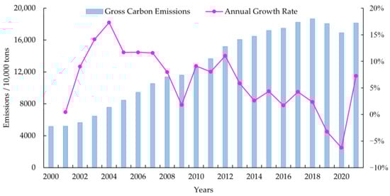 Carbon emissions trend of China’s logistics industry from 2000 to 2021.