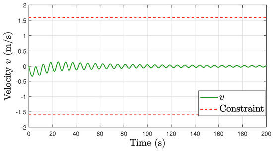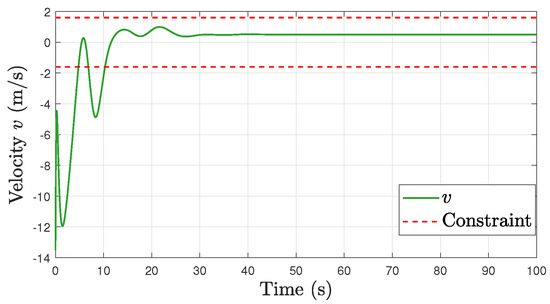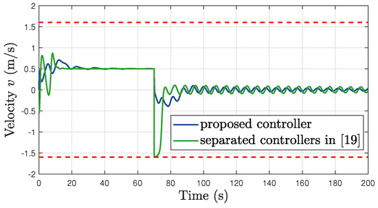 Comparative simulation: the linear velocity v and its constraints.