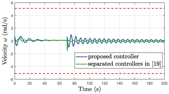Comparative simulation: the angular velocity and its constraints.