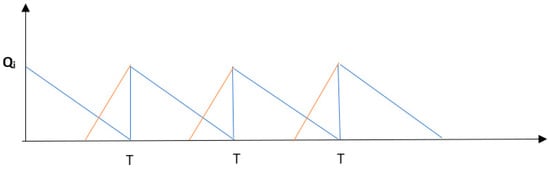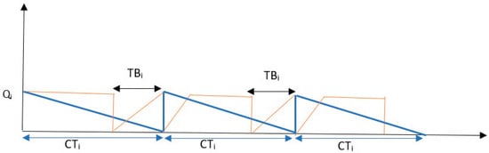 In this mode, the rate of consumption is lower than the production quantity; therefore, for every instance of consumption by the retailer, two batches of products are processed by the manufacturer. Moreover, in this mode, only one shipment is delivered to the retailer during the production cycle. Equations (15)–(17) ensure that in order to prevent shortages, the net production quantity is always larger than the retailers’ demanded quantity.
