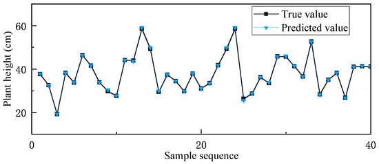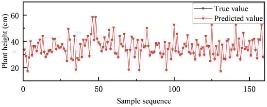 To further determine whether our method would negatively impact accuracy, simulation experiments were conducted on our approach using predictive models. Using the backpropagation (BP) neural networks algorithm [49], different eigenvalues of the plant are used to predict its length. In the experiment, the dataset was randomly divided into five participants, of which the training set accounted for 80% of the dataset and the test set accounted for 20%. Each participant trained their model locally before aggregating it into a global model via the server. During the entire process, the epoch was set to 50, and the learning rate was set at 0.01. The final training and testing results are presented in Figure 14 and Figure 15. The results indicate that the overall prediction accuracy remained high throughout the training and testing phases, with no discernible negative impact on the model’s accuracy.