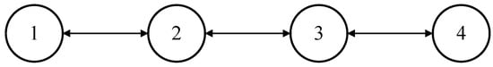 Consider a multiple train system with four trains. Suppose that the communication graph is as given in Figure 1, where the weight of each edge is . The maximum velocity of the trains, denoted as , is . The control input parameters and are set according to selection rule given by Assumption 2. The control input constraint set is . The coefficients of are , and . The desired relative positions of all trains are set as . The sampling time T is . The initial states of four trains are given by , , , , and and . The feedback gain is .