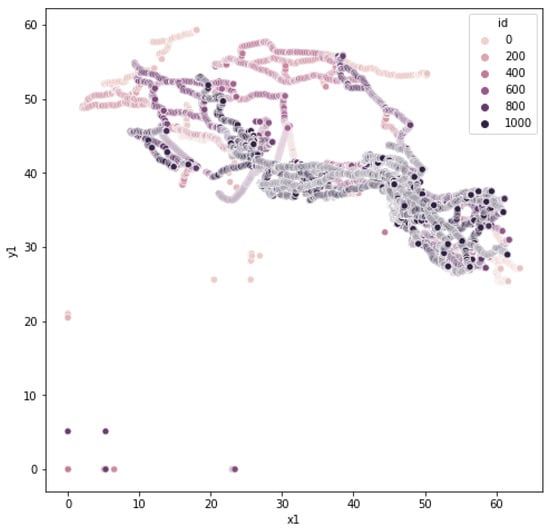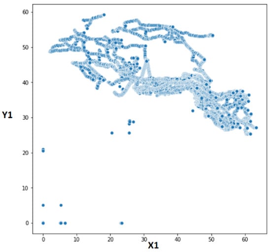 Figure 8 illustrates the evolution of a vehicle’s trajectory over time. This graphic provides a detailed representation of the vehicle’s chronological voyage by clearly illustrating its path and movements. Figure 8 illustrates the complete trajectory of a vehicle, from the beginning of its voyage to the conclusion of its route. Overall, these stats provide more than just numerical details, and offer informative comments.
