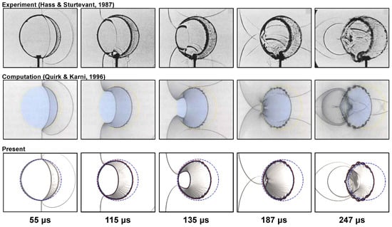 - Quirk, J.J.; Karni, S. On the dynamics of a shock-bubble interaction. J. Fluid Mech. 1996, 318, 129–163. [Google Scholar] [CrossRef]