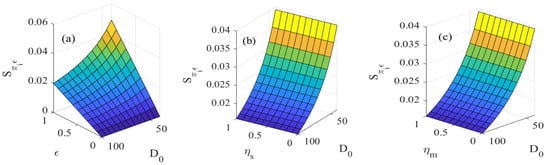 To better illustrate the risk transmission dynamics stemming from emission reduction technology fluctuations, information disclosure, and other factors within the low-carbon supply chain, and to gauge the sensitivity of the manufacturer’s emission reduction input level, the supplier’s emission reduction cost-sharing level, and the system members’ benefits to these risk factors, we can once again obtain the risk elasticity coefficient, denoted as , ; , , based on its definition. The risk elasticity coefficients for the benefits of the supplier and manufacturer with respect to and are as follows: