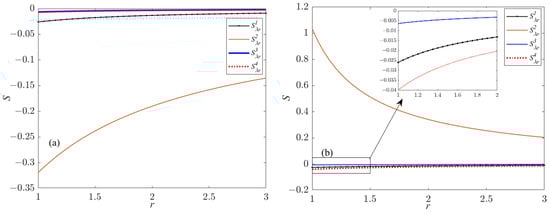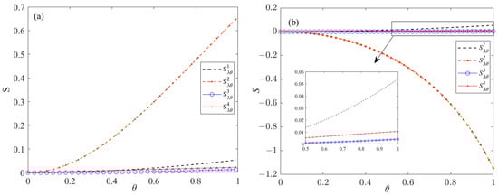 Figure 11 and Figure 12 better validate the conclusions in Propositions 1 to 3. Moreover, it can be seen that the abatement risk elasticity coefficients and of suppliers when only manufacturers have risk aversion characteristics are smaller than the case when all members of the low-carbon supply chain are risk-neutral, and the abatement risk elasticity coefficients and of suppliers when only suppliers have risk aversion characteristics are larger than the case when all members of the low-carbon supply chain are risk-neutral. This suggests that manufacturer risk aversion reduces the volatility risk of supplier abatement cost sharing, while supplier risk aversion has a negative effect on its own abatement risk transmission. In addition, it can be obtained from Figure 11 and Figure 12 that when , ; when , . When , ; when , . That is to say, there exists a critical value of the supplier’s risk aversion coefficient on its own abatement risk, and when it is larger than this value, the abatement risk elasticity coefficient will change in the opposite direction to the other scenarios under the influence of the carbon abatement technology level and the quality of the information disclosure.