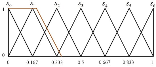 ([12]). Let denote a linguistic term set; therefore, the granularity of S is . There are three potential ELICIT expressions: “”, “”, or “”, where represents the symbolic translation variable, and denotes the adjustment coefficient .