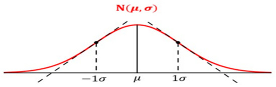 In an empirical–statistical approach, where there is a Gaussian (normal) distribution of the indicator values of the evaluated alternatives, some evaluators divide the distribution according to its mean and standard deviation into two extremes and a center zone for low (below −1σ), high (above 1σ), and medium (between −1σ and σ from μ), respectively, as shown in Figure 1.