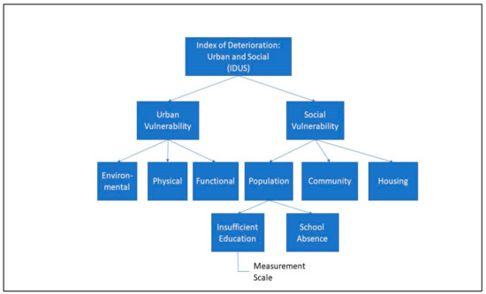 - IDUS (Ministerio de Desarrollo y Familia). Manual de Escalas Para la Cuantificación del Índice de Deterioro Urbano y Social (IDUS); Ministerio de Desarrollo y Familia: Santiago, Chile, 2019. [Google Scholar]