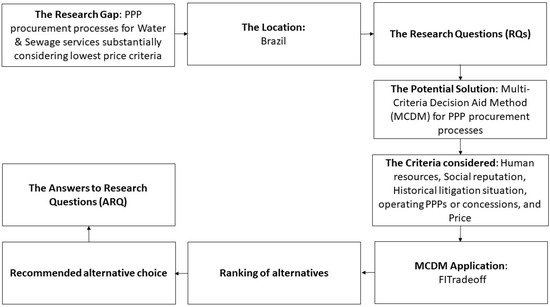 - ARQ4—the alternatives were evaluated from the comprehensive perspective of MCDM, and FITradeoff application provided the ranking of private partners, which led to the procurement winner, considering the set of criteria proposed in this research.