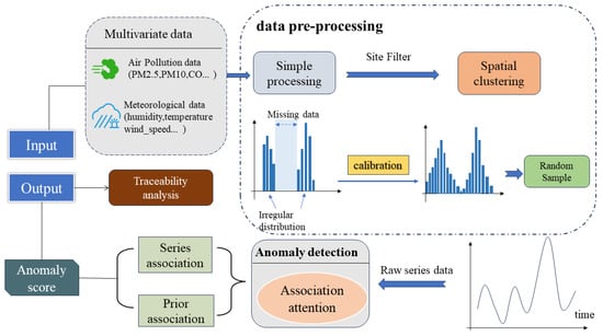 For example, traditional methods for detecting anomalies in air quality primarily rely on statistical models, data analysis, and simple machine learning models. They lack flexibility in their determination criteria and struggle to adequately address sudden human-induced situations [1]. These methods often overlook the spatiotemporal characteristics of real-world time series data, presenting certain limitations. Moreover, due to the unique nature of the datasets involved in anomaly detection tasks, the imbalanced feature distribution causes models to favor the majority class from training to fitting, leading to significant biases in evaluation metrics such as accuracy, making it difficult to achieve the desired performance, and significantly increasing the difficulty of improving results [2]. In recent years, with the upgrading of air monitoring stations, large-scale multimodal data have become available for research related to air quality. Models based on deep learning show significant potential in the field of air quality anomaly detection [3]. As data scale increases, deep learning outperforms traditional machine learning methods in performance and has more powerful data processing capabilities, more accurate detection capabilities, and better adaptability [4]. Among them, the attention mechanism brought by the Transformer model has attracted widespread attention due to its capability to handle sequential data, providing insights into time series anomaly detection.